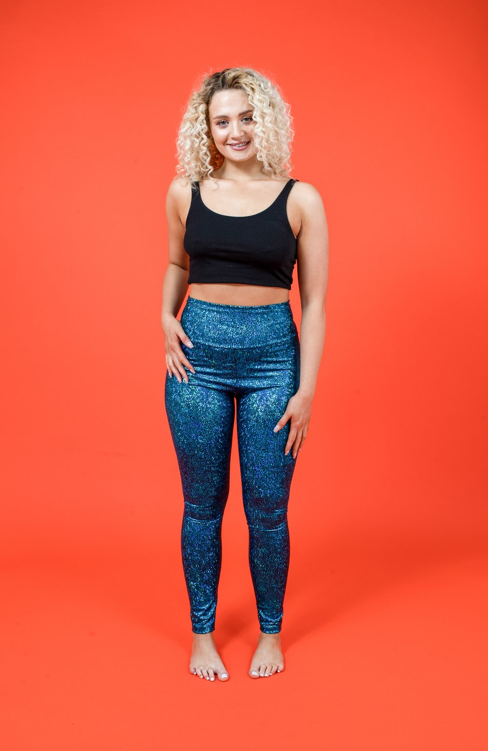 Turquoise Disco Mermaid High Waisted Holographic Leggings