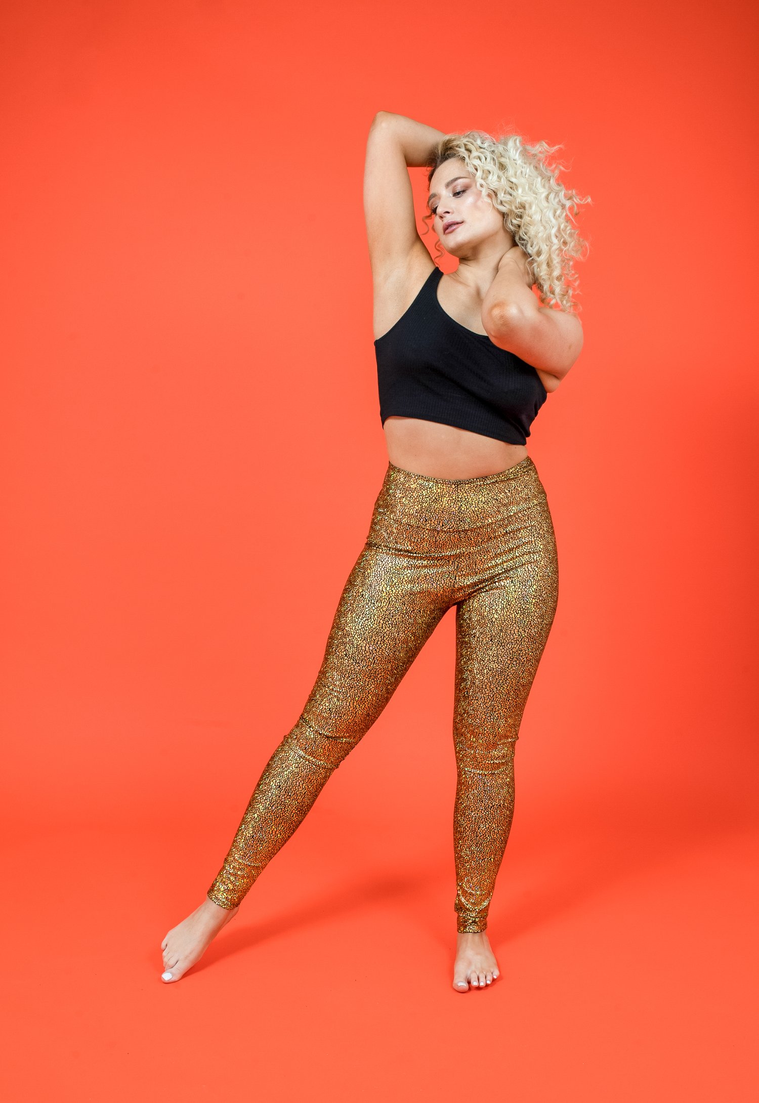 Gold Disco Mermaid High Waisted Holographic Leggings